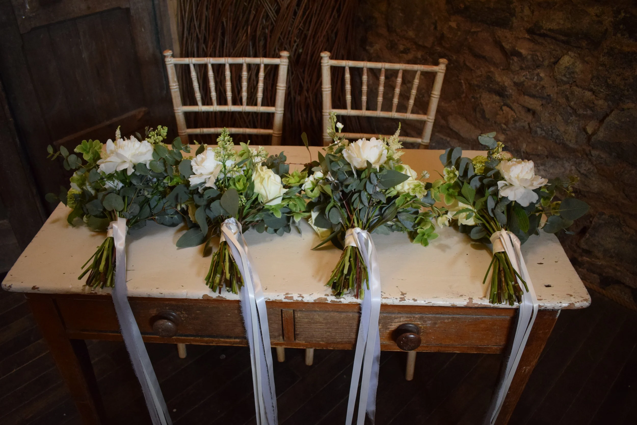 These two lovely souls wed in an outdoor ceremony in the stunning grounds of The byre at Inchyra. Allie wanted to keep the flowers natural and unstructured with a clean and neutral palette but with lots of texture with blousey roses and peonies and lots of lush foliage. The day was captured by the awesome SJH Photography
