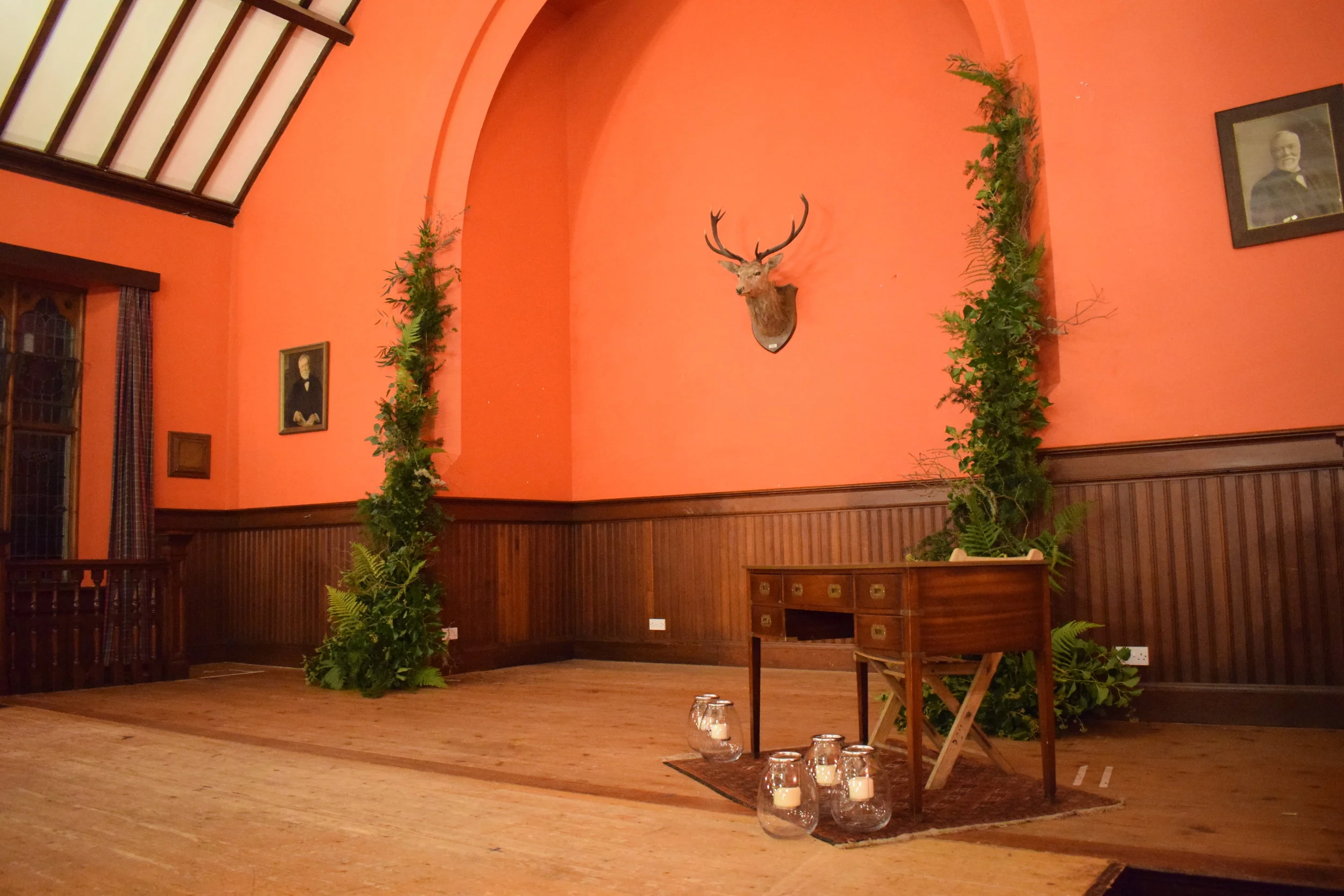 These two lovely souls wed on a chilly day in November at the amazing Carnegie Hall just outside of Dornoch. Laura wanted her florals to be seasonal and to work with the interior of the venue. We decided to go for a muted autumn palette with amazing Avignon Chysanths at the focal flower. I created a deconstructed arch within the hall to work with the natural stonework and draped foliage installations from the pillars. The day was captured by the oh so talented Steven Gallagher Photography
