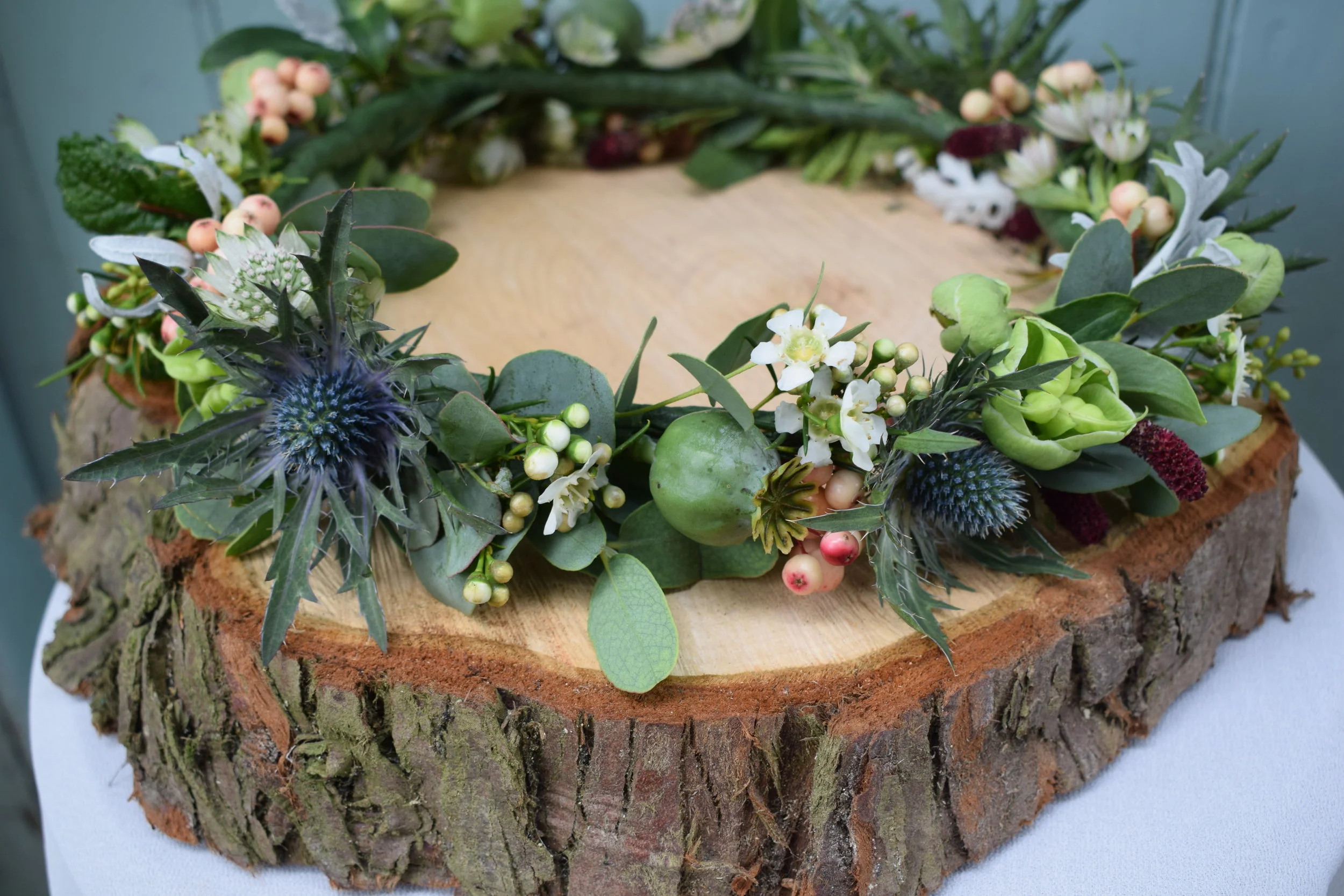 These two lovebirds wed in the grooms family farm in the Highland of Scotland. Sarah wanted the flowers to be understated and to reflect the change in season. So we went for a lovely selection of scottish grown dahlias, thistles and trailing foliage. I also created flowers crowns for the whole bridal party, in a palette to compliment the different colours of the bridesmaids. The day was captured beautifully by Fox and Bear Photography.